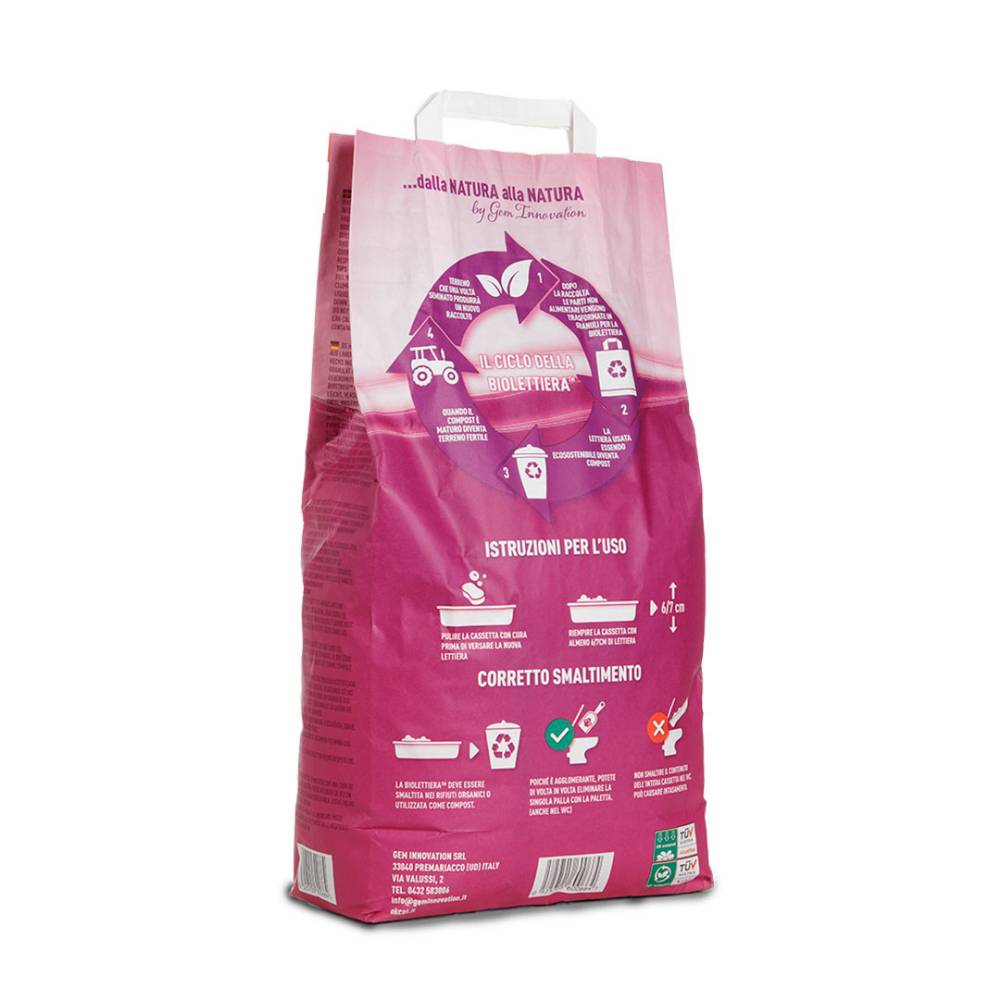 La nostra lettiera è leggera e pratica, pesando meno di 500 grammi per litro, e garantisce un ambiente sano e pulito grazie alla sua formula che elimina odori e polveri. Agglomerante e a lunga durata, consente di rimuovere facilmente le deiezioni compatte e di cambiare la lettiera meno spesso, offrendoti un risparmio. È anche compostabile e le singole deiezioni possono essere eliminate nel WC, nel rispetto delle normative locali. Perfetta per il benessere del tuo gatto e della tua casa!