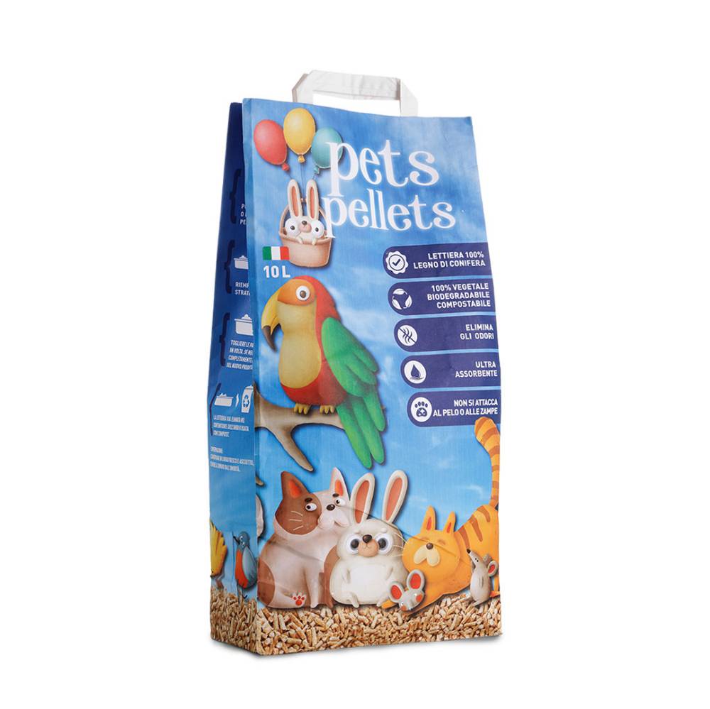 NON ANCORA DISPONIBILE per info info@geminnovation.it Pet pellets la lettiera naturale Biodegradabile. Per il tuo Pet e per l'ambiente. Confezione 3 sacchetti per scatola.